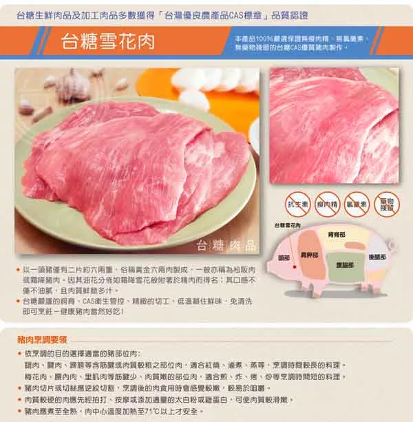 博客來e-coupon 【台糖肉品】雪花肉(霜降肉)1Kg量販包(CAS認證健康豬肉)